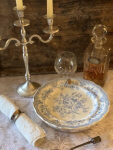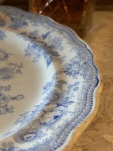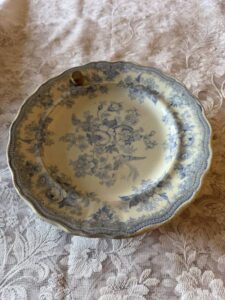 The plate has a pretty floral pattern in blue & white, although slightly faded over time, but still very attractive.