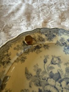 The plate has been well used over many years & through research may even be older than 100 years – imagine all the meals this plate would have been used for.