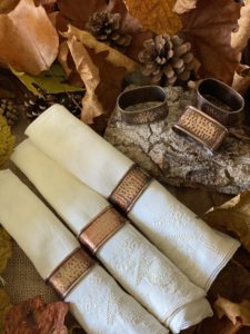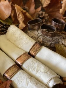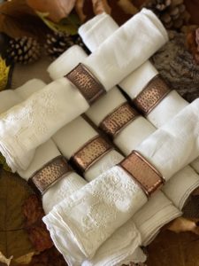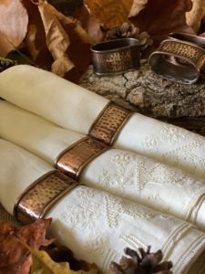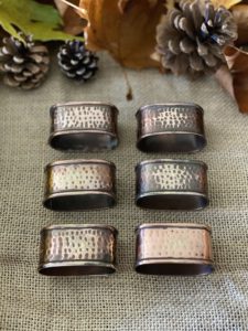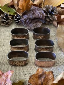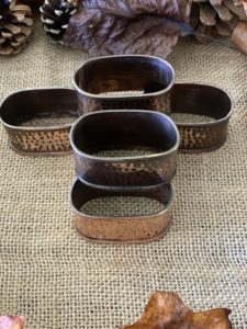 The hammered detailing gives the napkin rings texture & style. The copper metal itself providing a wonderful tone.