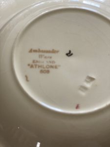 Produced by Simpsons Potters of Stoke – on -Trent, this Ambassador Ware is created in the “Athlone 608” pattern.