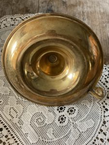 It has been well used over the years and therefore there are the usual age related signs of patina on the base , the edges and the handle. All of this would no doubt polish up a delight, but I have left it alone as I think it looks beautiful with all the slight imperfections. There are a few remnants of wax within the holder.