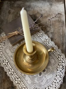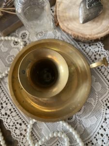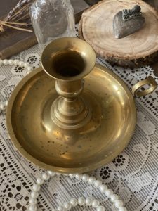 *SOLD* A delightful brass candlestick holder full of warmth & charm.