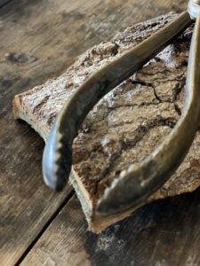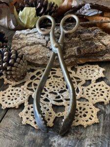 The end of the tongs has the grip feature which helps prevent the coals from slipping and because of the tongs age and usage these ends are darkened from the coal. There are areas of patina which you expect, but this simply adds to the beauty of this delightful piece of vintage homeware. There is also a slight “squeak’ intermittently when they are opened.