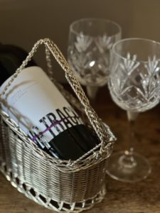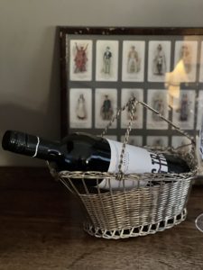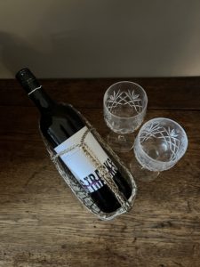 The silver metal holder is created from weaved wire , forming a basket with a rope effect handle. It is in very good vintage condition & perfectly holds a standard bottle of wine. Through research it most likely dates from the 1950’s / 60’s & could quite possibly be French ( but there are no markings to confirm this )