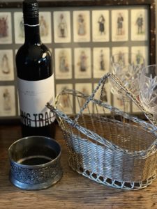 This lovely set consists of a weaved wire basket & a silver plated wine bottle coaster. (They are not matching pieces as such but simply put together to create a useful drink ware set)