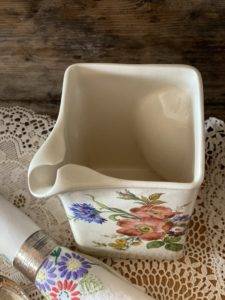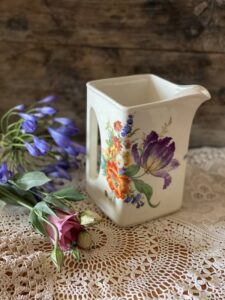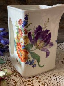 Although the pitcher has a delicate floral pattern on it the jug is robust and has a good weight to it. The surface does have grazing which would be expected given its a vintage piece, but this doesn’t in any way detract from its overwhelming beauty.