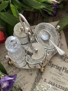 A truly pretty, eye catching vintage condiment set, ready to sit proudly on your stylish sideboard, dresser, kitchen or dining table.