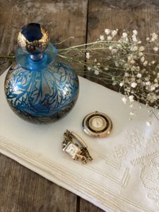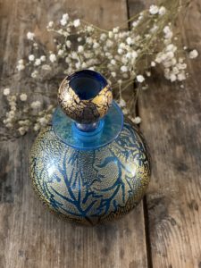 The colour is truly beautiful & this perfume bottle would look fabulous on a Bathroom window sill or on a dressing table catching the light.