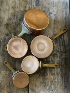 *SOLD* A truly incredible set of small copper saucepans that are sure to be an absolute joy to have in your home.