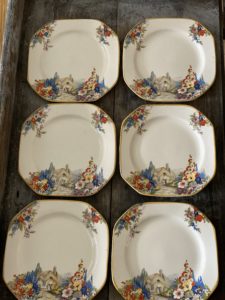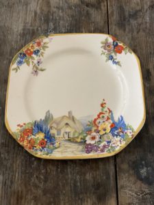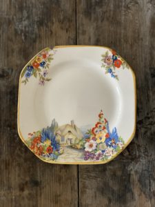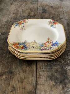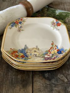 Produced by Swinnertons of England, these delicately designed plates are a real gem. The set depicts the “Hampton Ivory Old England Garden” scene , which features a stunning thatched cottage in the background surrounded by traditional cottage garden flowers.
