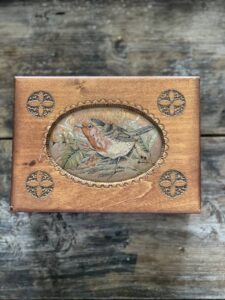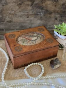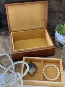 A perfect keep safe box for jewels, rings, beads , pins or buttons.