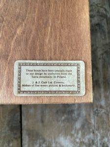 “ These boxes have been specially made to our designs by craftsmen from the Tatar mountains in Poland”.